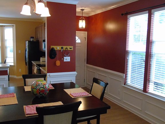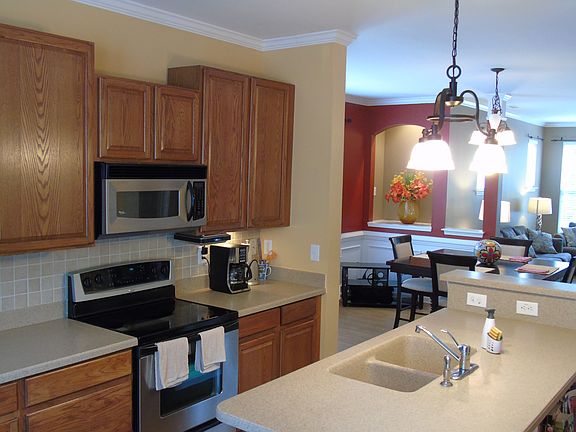 Adorable End Unit TH in Great Location! Open Floor Plan w/Lots of Detail & Room to Entertain. Large LR, FP & Built-In Surround Sound! 42" Oak Cabinets Corian Counters and tile black splash w/ Stainless Steel Appl & Island in kitchen. Spacious MaBr w/Walk-In Closet. MaBa w/ Garden Tub. 2nd Br w/Private Bath. 3rd Br makes great office or nursery. Ideal Side & Back Yard. Faces Wooded Buffer!