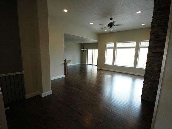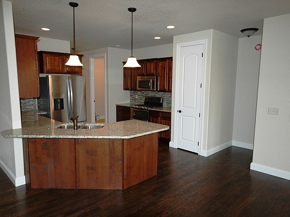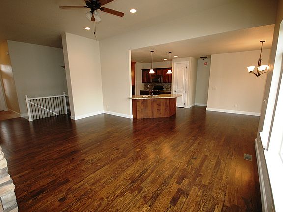 This ranch home packs many features into 1867 square feet while cutting no corners. The spacious great room is adorned by an arched soffit as well as large windows that let in the view from the back of the home. The kitchen features all the appliances including a gas range and a breakfast bar that over looks the great room and the dining room creating a space large enough for entertaining. The master suite, complete with walk-in closet, soaker tub and fully tiled shower features a beautiful tray ceiling and transom windows. Two additional bedrooms can be found on the other side of the home for maximum privacy. Two panel solid core doors, granite countertops, real hardwood and tile flooring show no expense has been spared in this quality home. A three -stall garage makes this home a smart, yet affordable choice.