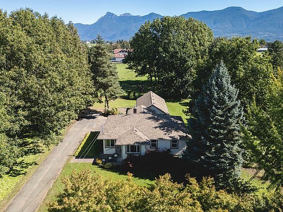 Perfect 2 acre property w/ solid 3 bed/1bath home on completely private property surrounded by mature landscaping, trees & stunning mount Cheam views. This wonderful property offers over 600' of road frontage w/ access to the rear of the property for potential secondary dwelling. Land has potential for a two 1 acre subdivision (talk to city for details). The house offers tons of natural light with views from very large windows on each side. Roof, windows & doors replaced in 2018. Lots of character throughout large living room w/ natural gas fireplace and 3 good sized bedrooms. Bathroom completely renovated in 2022. 2 single garages w/ workshop in between w/ 220v wiring. All of this & just minutes to town and w/ city water. This property is truly one of a kind & rarely comes available!