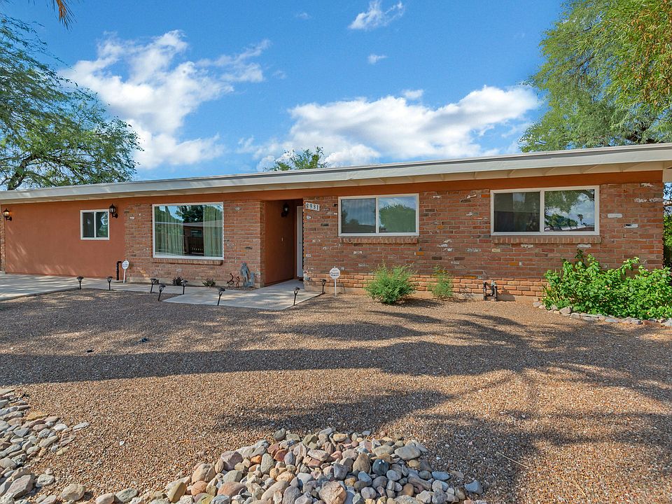 This gorgeous property has been beautifully updated with plenty of open space. The kitchen has been upgraded with granite countertops and knotty alder cabinets. As a special touch the brick wall in the house was built with bricks brought in from downtown Tucson when the home was originally built! Not to be missed is the self contained guest quarters. The enclosed carport now encompasses a living area, bedroom, bathroom and kitchenette. This permitted area has it's own entry from the side of the house. The spacious yard is nicely shaded with mature trees. Step outside to enjoy the spectacular mountain views. The HOA is voluntary but if you choose to pay the $400 annual fee you have access to the community pool area. This home is ready for you to call home. MOTIVATED SELLER!