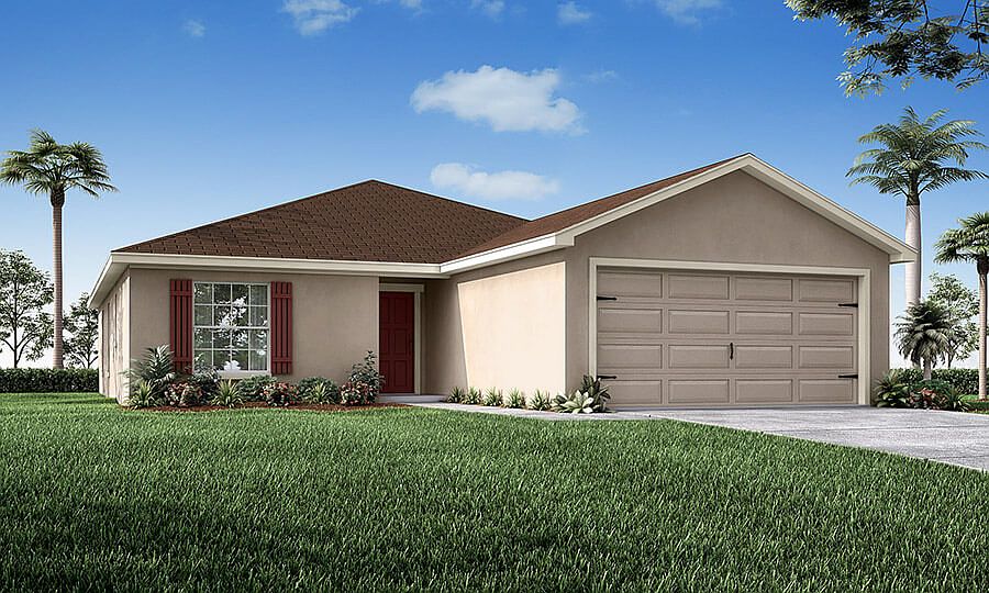 Brand-new 4-bedroom homefor sale in Ocala, Florida!The Peyton, a Florida new home plan by Highland Homes providingyou with a desirableopen living areacomprised of a large gathering room, open kitchen with a counter-height island, and a sunny dining cafe, all under an airy volume ceiling. Relax in yourprivate owner's suitecomplete with a walk-in wardrobe including linen shelves and anen-suite bathwith dual vanities, a tiled shower, and a closeted toilet.Plus, enjoy outdoor living on yourcovered lanai!This home includes many stylish finishes and low-maintenance features: Open kitchenwith: 36-in. grey shaker-style cabinetswith crown moulding anddecorative knobs/pulls Premium laminate countertops with a beveled edge finish Samsung stainless steel appliances: Smooth-top range Over-the-range microwave Quiet-operation dishwasher Side-by-side refrigerator Pull-down faucet Walk-in pantrywith tight-mesh shelving Luxurious, low-maintenancewood vinyl plank flooringthroughout the living area, laundry room, and bathrooms Mohawk stain-resistant carpet in the bedrooms Custom-fit 2-on.faux woodwindow blinds Energy-efficientLED lightingin kitchen, and gathering room Ceiling fan prewires in the gathering room, lanai and bedrooms Cable prewires in the gathering room, and bedrooms Plumbing for afuture laundry tub Built-in pest control Architectural shingleswith limited-lifetime warranty Florida friendly landscaping with irrigation syste