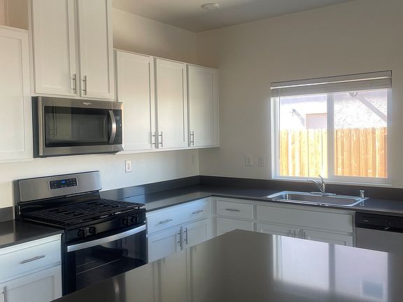 Built in 2023 this 4bd 3ba home with a paved backyard has only been occupied for 3 months. Brand new fridge in the kitchen with a large island looking into the living room. Sliding door to the backyard. W/D in the property with a large laundry room with shelves for storage. Half bath down stairs for guests.