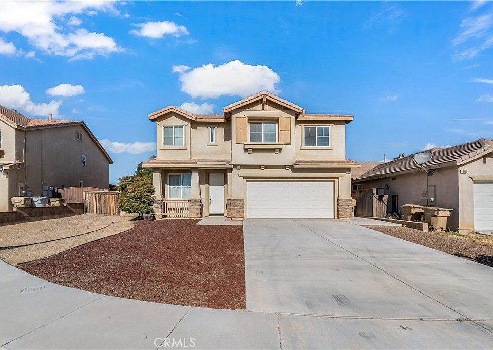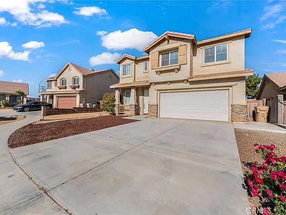 GORGEOUS & SPACIOUS 5 BEDROOMS, 3 BATHS, 2512 SQUARE FEET OF LIVING SPACE, ATTACHED 426 SQUARE FOOT LARGER 2 CAR GARAGE, AND ABOUT 6200 SQUARE FOOT LOT COMPLETELY FENCED WITH GATES ON THE SIDE. Located in Hesperia / Oak Hills area and an excellent commuter friendly and convenient location!! Only few minutes from 15 Freeway exit, super Walmart shopping center, Super Target Shopping Center consists of all type of shopping, Restaurants, Banks, gas stations, electric car charging, Starbucks, automotive centers and etc. Nice and quiet neighborhood! Home sits on end of a Cul-De-Sac and no through traffic. Home features landscaped front yard with 8 foot tall entry door to the formal living, and dining room has high ceilings, 2 large picture windows, gorgeous tile flooring and chandelier above formal dining area. Separate family room has larger window, beautiful tiled faced fireplace and built-in mantel. Gourmet kitchen has walk in pantry, huge center captain island with huge bar area, stainless steel deep sink with pulldown faucet, and all stainless steel appliances, plenty of cabinet space with a built-in computer desk. The guest bedroom and bathroom is downstairs and could be great bedroom for senior / teenage members of the family. The guest bathroom has walk in shower. The stairway from living room area brings us upstairs to a loft/living room, great area for entertaining or could be use as an office/bonus room. GIGANTIC PRIMARY BEDROOM w/2 larger picture windows, attached primary bathroom has huge counter with double sinks, his/her walk in closets, deep tub with stall separate shower. All bedrooms are great size with ample closet spaces. Larger common bathroom also has huge counter with double sinks, full tub and shower. In house separate laundry room has clothes hanging bar and folding shelves. Nice back yard has block wall at the very back and extra concrete all around the home!! The entire downstairs has custom tile flooring and upstairs has carpet flooring. Ceiling fans, and window blinds throughout. A truly nice home and must see to appreciate!!