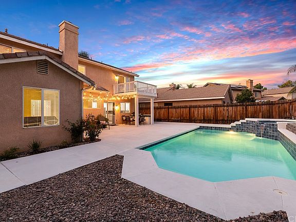 Amazing pool home located on a cul-de-sac in the highly desirable community of Wildrose Ranch. Boasting 4 bedrooms and 3 baths plus office (potential 5th bedroom) you will fall in love with the open and bright feeling of the living & dining room, porcelain tile flooring, soaring cathedral ceilings and grand staircase as you enter the home. The spacious kitchen opens to the eat-in area and family room featuring a gas fireplace to enjoy on cold nights. The first floor also features a main floor bedroom (with access to backyard), full bathroom and office. Head upstairs to the primary bedroom with vaulting ceilings and a deck that has breathtaking views of the Cleveland National Forest. The sizable 3rd and 4th bedrooms are complimented perfectly by a convenient full bath and additional hallway storage/laundry area. The backyard oasis was created for entertaining. The pool and spa was remodeled in July 2020 and equipment (except heater) was replaced in 2019. This home is located in the award winning Temescal Valley Elementary and Santiago High School boundaries. An added bonus - LOW HOA AND LOW TAXES make this a home you don't want to miss!!! Welcome Home!!!
