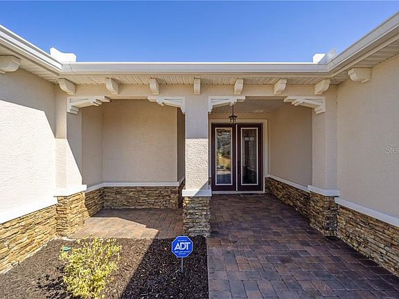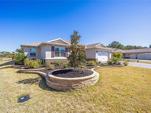Welcome home to the best home in the Candler Hills section of On Top of the World! This lightly lived in snowbird home is a custom Wellington estate model and is less than 2 years old. Your new home has every upgrade and extra available not to mention a premium golf course lot! After the builder's upgrades the owners added custom wood closets, upgraded lighted landscaping including a waterfall in the back plus a full outdoor kitchen. The gas fire pit adds to the beauty. All of this is on a paver patio with walls beyond the screened porch. You will love your back yard! Crown molding and rounded corners are in all of the main living areas. You will love this kitchen with the highest quality wood cabinets with pull out drawers, staggered, and with crown molding of course. Large 5 burner gas cooktop is ready for the chef! The countertops are the top of the line cambria quartz and the sink is an executive chef Kohler brand. You will love cooking in your dream kitchen and your guests can sit at the 4 seater bar and chat with you while you do. Needless to say all kitchen appliances are upgraded. All three full bathrooms have beautiful quartz countertops and the master shower has a feature wall that will amaze you with its beauty. You'll feel you are showering in an elite spa! The great room features a colorful wall fireplace with built ins, designed to enchant and relax you. There is a wine fridge and bar for your pleasure as well. Not a detail has been forgotten. Even the laundry room has a full wall of additional cabinets for your storage needs and opens to the master closet for your ease in hanging up your clothes! There is no carpet anywhere in this home. It is all hardwood and porcelain tile! Not only is this home a split plan but the front of the home has a separate hallway to the 3rd and 4th bedroom, currently used as an office and a craft room. Those two rooms share the 3rd bathroom. The 3 car garage has an epoxy coat with flakes and is extended 4 feet for added storage or workshop space. This home is truly better than new! Why build when you can move in now, even the gorgeous furniture can be yours! On Top of the World was rated the best 55+ community in the country by 55places and a visit will show you why. Three golf courses, five pools, incredible adult education and clubs that include model railroad and remote control planes and cars is only the start of the list. On Top of the World is only 15 minutes away from the new World Equestrian Center! You truly won't want to miss this better than new home that is ready for you to move in and relax!
