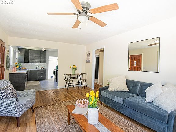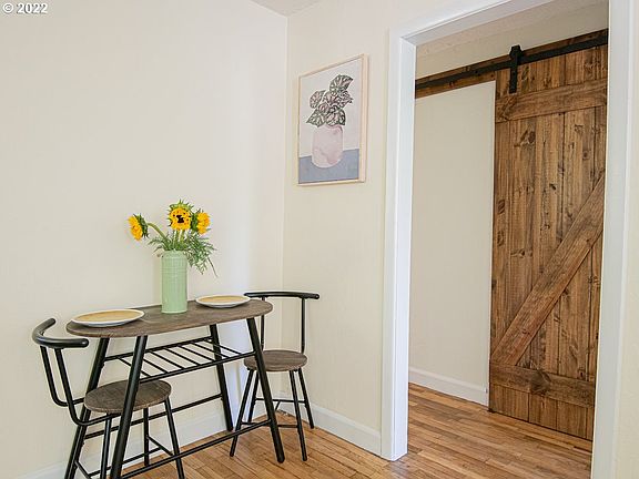 Updated one-level ranch on an oversized lot has the style and the substance! Original hardwood floors, new interior paint. Remodeled kitchen is freshly contemporary, with quartz counters, ss appliances, and luxury vinyl flooring. Sip your morning coffee on the deck just off the bright primary bedroom - second bedroom ideal for working from home. Partially converted garage for flex space, home energy score of 10, HUGE private backyard in great community! [Home Energy Score = 10. HES Report at https://rpt.greenbuildingregistry.com/hes/OR10203075]