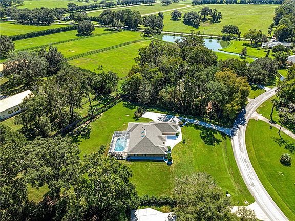 Exquisite Modern Estate Next to the World Equestrian Center, in the beautiful York Hill neighborhood. This exceptional 3-bedroom, 2-bath pool home sits on over an acre of beautifully landscaped grounds, offering refined comfort, advanced technology, and resort-style living. Located just one minute from the World Equestrian Center, the property is surrounded by lush lawns and mature oaks and bordered by world-class horse farms including Live Oak, Double Diamond Farm, and Hidden Hills Farm. This home combines privacy, sophistication, and modern convenience in one of Ocala's most desirable settings. This property captures the true essence of Ocala's equestrian countryside. Inside, the open-concept layout is bright and inviting, featuring rich hardwood floors, custom finishes, and a dining room chandelier with amber lighting. The spacious living room centers around an 85-inch 8K TV with Dolby surround sound and a Sonos sound system extending into the kitchen and primary suite. Enjoy ultra-fast 1GB WiFi that reaches outdoors, a full YouTube TV subscription, and two Sony PS5 consoles for entertainment. The chef's kitchen is designed for both cooking and gathering, with stainless steel appliances, granite countertops, and warm wood cabinetry. Every bedroom features whisper-quiet, Swiss-made ceiling fans, with two Standard King beds and a California King in the third bedroom. Each of the additional bedrooms also includes electrically adjustable office desks perfect for work or study. The bedrooms are finished with a luxury Stanton wool carpet for comfort and health. The home is equipped with top-tier systems, including a hospital-grade A/C filter with UV light, a full-home water filtration system with additional UV purification, and a Ring alarm camera system for security (external). Both bathrooms include bathtub and shower, with the primary suite offering a separate soaking tub and walk-in shower. Step outside to your private oasis a saltwater pool with a super-quiet heater, pool cabana, and three teak lounge chairs for sunbathing. The patio and pool area also feature outdoor loudspeakers, creating the perfect ambiance for relaxation or entertaining. Dine al fresco at the outdoor table seating 12, surrounded by serene landscaping and open green space. The property also offers a 2-car garage, a robotic lawn mower, weekly or biweekly cleaning service, and full lawn and shrub care all included for effortless living. This home is more than a residence it's a retreat, blending modern luxury, smart home technology, and natural beauty into one seamless experience. Whether you're here for the sunshine, the equestrian events, or simply a peaceful escape, this home offers the perfect retreat to create unforgettable memories all season long.