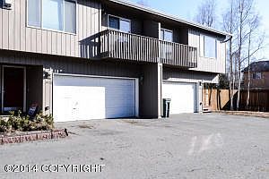 South Anchorage town home with open concept living/dining/kitchen areas with neutral colors. Vaulted ceiling in living/dining/master bedroom area and master on main living level. 2 other BRs down with Jack & Jill Bath. One BR has access to deck that leads to fenced backyard. Wood laminate flooring throughout. Great location close to shopping, restaurants and walking distance to schools