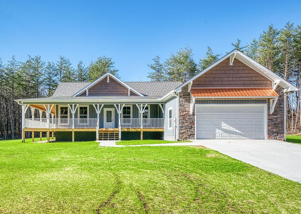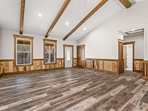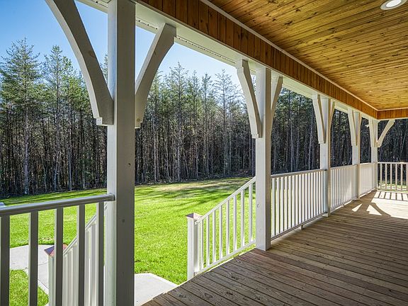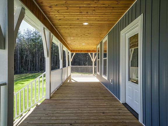 WOW! Take a look at this new construction situated on 4.5ac with great PRIVACY!! No builder grade here, this is custom QUALITY!! This home has a maintenance free exterior with vinyl board & batten and stone. Plenty of room to relax and enjoy the privacy with 1000sf on the covered wrap around porch. The porch has vinyl railing, tongue & groove ceiling, and LED lighting. Inside, the living room, dining & kitchen are on an open plan. The ceiling is vaulted with hand hewn exposed beams & custom built-ins flank the gas log stone fireplace with 100yr old barn wood. The kitchen has custom hickory cabinets with leathered granite countertops, 60yr old galvanized metal accents, huge island with barn wood front, nice pantry & upgrade Whirlpool stainless appliances. The master suite has a full bath with double sink vanity, large curbless tile shower with glass doors to be installed, tile flooring, and a nice walk-in closet. The bedrooms are on a split floor plan for nice privacy. The laundry room