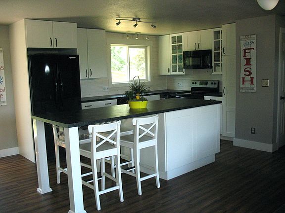 Don't hesitate on this one; it will be gone soon. Move in ready, nicely updated home w/a country location. Open floor plan features natural gas fireplace, laminate flooring that flow into the kitchen, hallway & one bedroom. Kitchen has been completely updated w/island complete w/eating bar & built in desk area. 3 bedrooms, full bath w/a beautiful tiled shower & separate bathtub & large vanity with 2 sinks. Westerly faced back yard is fenced, landscaped with a great outbuilding. Lots of parking.