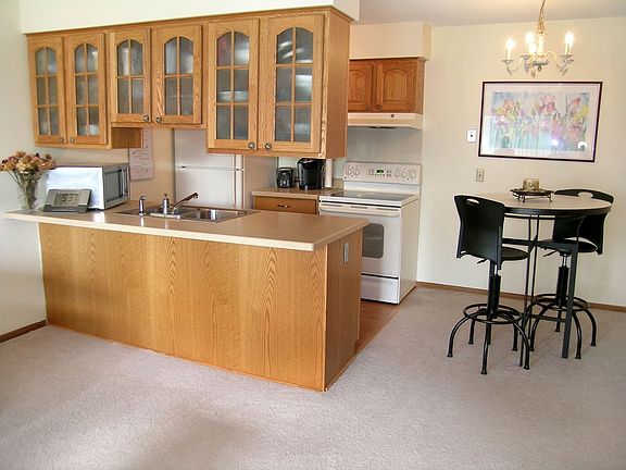 Wonderfully updated unit in complex with heated garage, sauna, outdoor pool & party room. Remodeled kitchen w/new oak cabinets, Corian countertops, sink, flooring & appliances. Bathroom features new toilet, vanity, tile flooring & tile shower surround.