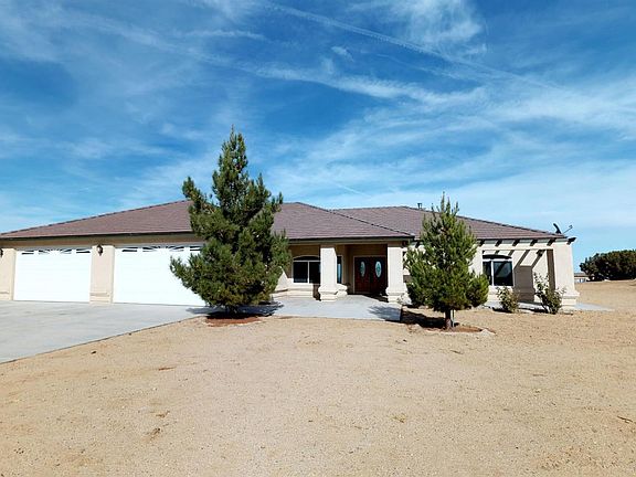 Beautiful custom home secluded on the south side of Pinon Hills. This home offers a split floor plan with open kitchen to the family room with wood burning stove and custom rock hearth. The house was strategically designed to enjoy the view from the kitchen and family room. The large kitchen offers, granite counters, double convection oven, walk in pantry and island with sink. There is are two master bedrooms, the main master offers a large walk in closet, Jacuzzi type tub, walk in shower with dual shower heads and custom tile. There is a central vacuum system, hot water-circulation system to provide instant hot water throughout the house. The large covered back patio that overlooks the valley has a wired speaker system. There are 3-apricot, 3-peach, 2-pear and 4-apple trees! Did I mention the 4 car garage with 1 drive through, perfect for your boat! There is an additional road to pull in your RV or trailer with hook ups on either side of the house. Ready for you to move in. Don't miss this one!