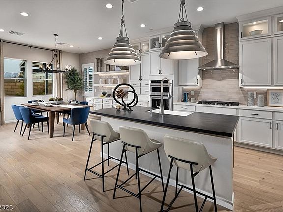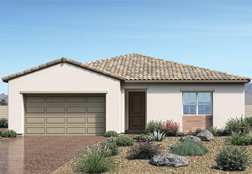 Don’t miss this quick move-in with fully landscaped backyard! The Braga’s open floorplan features 3 bedrooms and 2.5 baths. The inviting covered entry and open foyer welcome you home. With free-flowing space between the kitchen and great room, the casual dining area is the perfect setting to connect with the family. The open-concept great room is highlighted by a gas fireplace and convenient access to the covered outdoor patio through a 9ft sliding door. Serene primary suite complete with luxe bathroom and huge walk-in closet. Spacious secondary bedrooms share a hall bath with dual sink vanity and tub/shower combo with tile surround and soap niche. Additional highlights include stunning 10 ft ceilings, planning center and laundry room sink. Put the final touch on this incredible home with endless finishing options through the Design Studio. This brand new home is located in a gated community with its own community pool and access to the incredible Skye Canyon amenities!