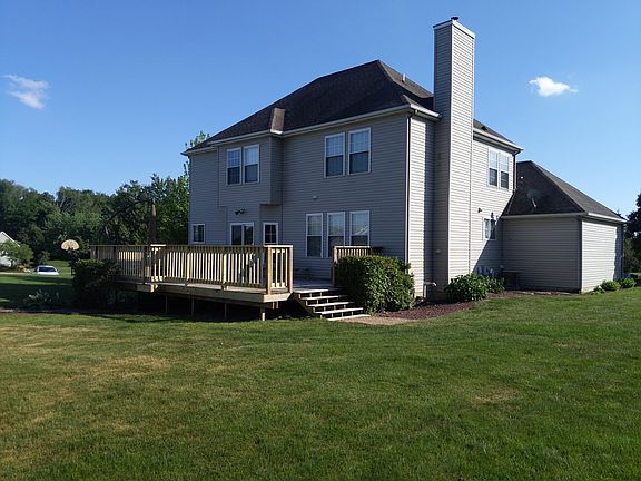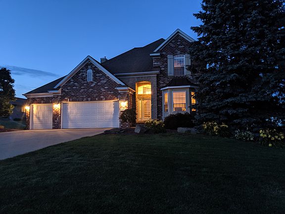 .This stunning, well maintained, 2000 Parade executive home shows pride of ownership! The home sits on over half an acre in desirable Byron Center schools. The spacious kitchen boasts custom cherry kitchen cabinets and ceramic tile flooring, as well as brazilian cherry hardwood flooring throughout the main floor, you can even warm yourself by the wood pellet fireplace in the living area, main floor laundry and mud room area. The winding staircase brings you up to 3 bedrooms, a full bath, and master bedroom with ensuite. The lower level with its welcoming second wood pellet stove is a great place for entertaining, 2 additional bedrooms and bath, plus plenty of storage. Central vac system, 3 stall garage, underground sprinkling and large deck are just a few of the additional items! This is a must see, schedule your showing today!