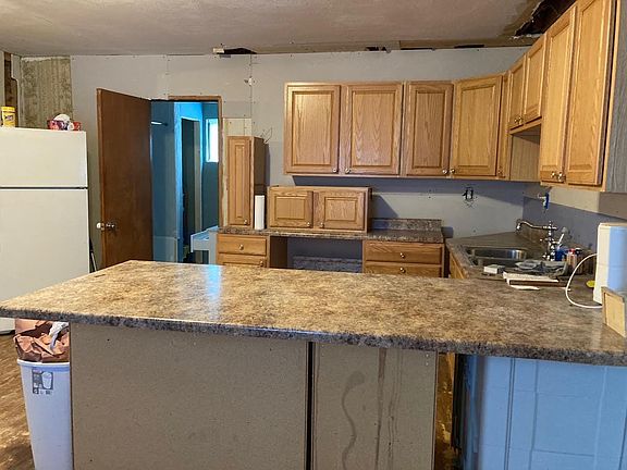 This 4 BR, 2Bath home has lots of potential!! Rehab has started; JUST NEEDS COMPLETED. HOME HAS NEWER ROOF, SOME NEWER WINDOWS, PLUMBING, ELECTRIC AND FLOORING. Nice corner lot in town. HOUSE IS MUCH LARGER INSIDE THAN IT APPEARS ON THE OUTSIDE!! Come see and finish the way you want. Has one car detached garage. Covered front porch w/handicap ramp.