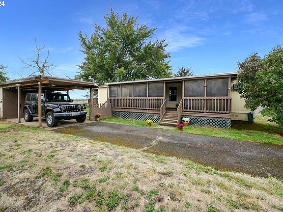 Don’t miss this rare opportunity in Country Acres Mobile Home Park! This charming, all-ages community offers a peaceful place to call home. Tucked away at the end of a private road, space #14 is waiting for you. This spacious, single-story manufactured home was built in 1990 and offers 3 bedrooms, 2 bathrooms, and modern comforts like ductless heating and cooling. Relax and enjoy the covered and screened-in front patio, where you’ll find a built-in hot tub. The vaulted ceilings in the open-concept living room, kitchen, and dining area provide the perfect space for entertaining friends and family. The primary bedroom features an ensuite bathroom, large walk-in closet, and stunning views off another covered deck. On the opposite side of the house, you’ll find the two additional bedrooms and a full bathroom. The space includes a carport, tool shed, and yard to garden or play with your doggo. Surrounded by beautiful country views, you’ll love watching horses grazing in the nearby pasture. Experience country living with the convenience of being close to town. With a little energy and a personal touch here and there- you can create something truly special in an amazing location. Space rent is an affordable $550/month and includes water, sewer, and garbage. Contact your favorite Realtor to schedule a tour!