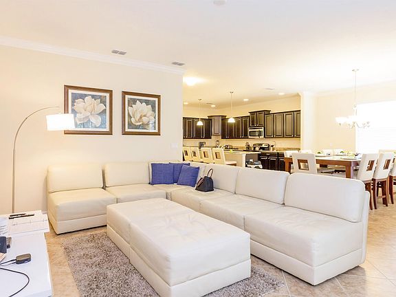 You will love the space and contemporary furnished 6 bedrooms and 5 bathrooms. With the fully equipped kitchen with stainless steel appliances and all cooking utensils, full size refrigerator, dish washer and microwave and much more for a wonderful home cooked meal or just take advantage of local restaurants to deliver to you while you relax. The laundry room is equipped with washer and dryer. The family room is an ideal place to gather kids to watch cartoons play video games or use the wireless internet connection. Paradise Palms features everything a world reference of newest five-star resort can offer: an amazing Club House, heated swimming pool, stunning waterfalls, huge lagoon pool, two spas, sauna, complete fitness center, kids and adult game rooms, tennis courts, movie theater, tiki bar, restaurant grill, a star bucks shop and more!
