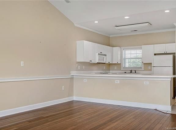 Light and airy top floor condo in the heart of the University City. Move in ready with new beautiful pre-finished wood floors a year ago and recently painted. A spacious 2BR/2BA open floor plan with ceiling fans and covered balcony with a view of pool. Vaulted ceilings in living areas and bedrooms make the unit feel much larger than others. Almost new washer and dryer included as well as refrigerator. Ideal for UNCC students and/or staff. Close proximity to the Lynx Blue Line Extension from UNCC campus to Uptown, grocery, shopping, restaurants and the Mecklenburg County Greenway.