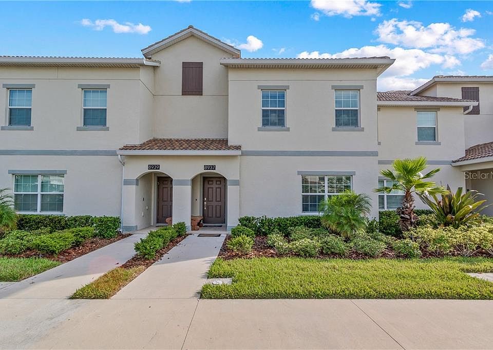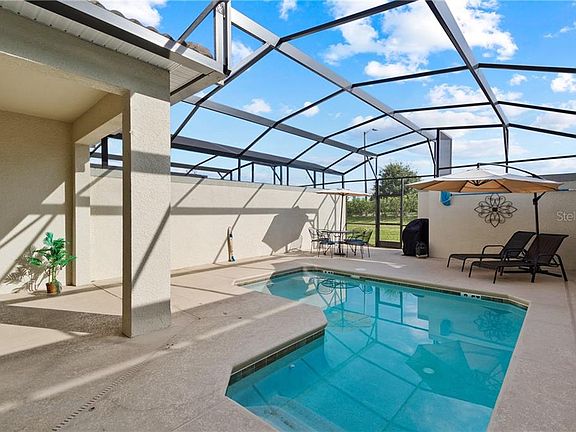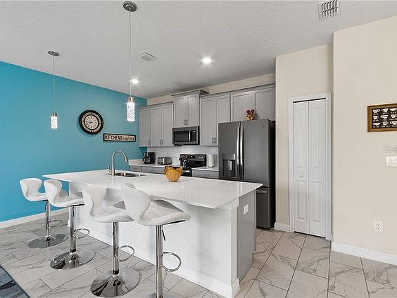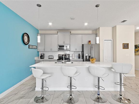 Your wait is over! This 4-bedroom/3-bath POOL townhome in Champions Gate is the investment property you have been searching for! This home is being sold fully furnished with modern furnishings and designer touches and it is currently configured to sleep 11. The home is currently used as a short term rental but would also make a fantastic private vacation home or single-family residence. As you step into the foyer you will immediately admire the beautiful tile flooring that runs throughout the main living areas. To the right of the foyer is a large private bedroom perfect for guests and situated close to the guest bathroom featuring Corian countertops and a walk-in shower. At the back of the home you will enter the open concept living space where you will find a large living room, spacious dining room and modern kitchen. Enjoy plenty of natural light from the multiple sliding doors that lead to the enclosed lanai and beautiful pool. The kitchen features modern cabinetry with crown molding, Corian countertops including a large kitchen island for extra seating and prep space, stainless steel appliances, and modern pendant lighting. Upstairs you will find the large master suite featuring plush carpet, large closet and adjoining bathroom with dual vanities, and an extra deep shower/tub with beautiful custom tile details. There are two more large bedrooms and a beautiful guest bathroom with dual vanities on the second floor. A laundry closet is placed conveniently near the bedrooms. Step outside and splash into the inground pool or catch some Florida rays while lounging on the deck. You will love all of the fantastic amenities Champions Gate has to offer including a guard gated entrance, a signature golf course, beautiful club house, community pool, kids splash pad, movie theatre and more! This home is just minutes from the gates of the theme parks, as well as shopping, dining & more. Call us for your private tour today!