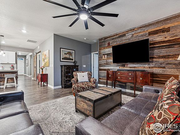 Get ready to fall in love with this beautifully updated ranch-style home in Firestone's highly desirable Falcon Point at Saddleback neighborhood! With four bedrooms and two bathrooms, this home offers comfort, style, and thoughtful upgrades throughout.The kitchen is a true showstopper-featuring granite countertops, stainless steel appliances, a gas range and oven, a built-in microwave, and a second oven for big gatherings or holiday baking marathons. The oversized island is the heart of the space, perfect for meal prep, casual hangouts, or morning coffee.Your spacious primary suite includes a remodeled ensuite bathroom with a walk-in shower, double vanities, and a fantastic walk-in closet. Three additional bedrooms offer cozy carpeting, while the fourth has been transformed into an incredible home gym with high-performance Roppe Recoil fitness flooring-but it can easily convert back to a traditional bedroom with carpet if needed.Design details like the custom barn wood accent wall in the living room, and sliding barn wood doors in both the primary bedroom and laundry room, bring character and charm you won't find in cookie-cutter homes.The laundry room has also been upgraded with butcher block counters and crown-molded cabinetry-and yes, the washer and dryer are included, so there's no guesswork for your move-in day.Out back, enjoy all the seasons on your covered patio and stamped concrete area-perfect for grilling, relaxing, or cozying up around a fire pit in the fall. There's also an 8x8 shed for storing lawn tools, bikes, or seasonal decorations.Bonus: The HOA takes care of snow removal (driveway and sidewalks included!) and trash service, giving you one less thing to worry about. And with a three-car garage, you'll have space for cars, gear, and everything in between.All this just minutes from Saddleback Golf Course, local dining, and great shopping. Come see what makes this home (and community) so special-you'll be glad you did