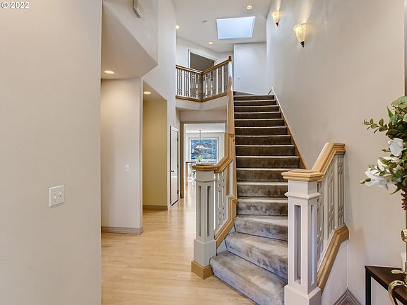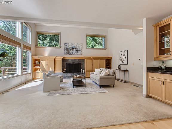 This beautiful 4 bed/2.5 bath home is nestled in the lush hills of Forest Heights. Featuring a massive light filled great room w/ 20' vaulted ceilings, built-in entertainment center, wet bar & gas fireplace. The kitchen boasts wood cabinets & flooring, a breakfast nook, perfectly laid out for entertainment w/ a massive southern exposed deck. Upstairs is a full owners suite w/ walk-in closet & 2 spacious bedrooms. 4th bedroom has potential to be an office or guestroom. [Home Energy Score = 3. HES Report at https://rpt.greenbuildingregistry.com/hes/OR10192396]