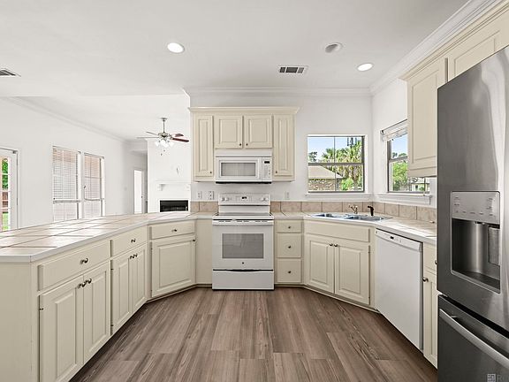 Welcome to Worthington Estates! This charming 3-bedroom, 2-bath home sits on a spacious corner lot right near the main entrance of the neighborhood—super convenient and easy to find! Step inside to an open floor plan with plenty of natural light and neutral tones that make decorating a breeze. The kitchen is the heart of this home, opening to the living and breakfast areas. It features tile countertops, a corner sink, white matching appliances, an electric cooktop, and a generous pantry—plenty of room to cook, entertain, and gather. The master suite is a true retreat with an abundance of windows overlooking the backyard. The ensuite bath offers dual vanities, a jetted tub, a separate shower, and a large walk-in closet—everything you need for comfort and relaxation. The additional bedrooms are spacious and share a well-appointed bath. Outside, you’ll love the covered patio and fully fenced backyard—perfect for morning coffee, weekend BBQs, or just relaxing in your own private oasis. If you’re looking for a move-in ready home in a fantastic location, this is it. All that’s left to do is make it yours!
