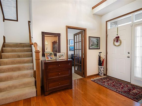 The perfect home for entertaining family and friends! Amazing open floor plan; tall ceilings; hardwood throughout main level. Cozy family room w/ fireplace; adorable sun room w/ cathedral ceiling & skylights; kitchen has granite counters, eat-in area, island w/ snack bar, & pantry closet. Gorgeous master suite features ornate pan ceiling, crown molding, & HUGE walk-in closet. New furnace in 2017.