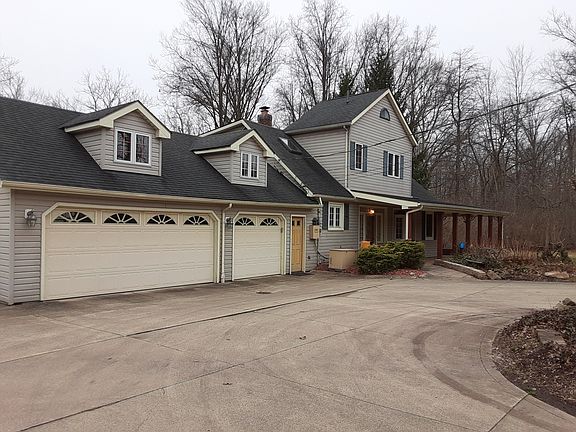 Unique 5 bedroom (1 on first floor) home with beautiful, spacious yard. Hardwood floor in living room. New stainless steel appliances, ceramic tile floor in kitchen, wood burning fireplace. Acreage w/3 floor storage building (30 by 40), 3 car attached heated garage. Large 3 story barn with drive in access to first and 2nd floor. whole house natural gas generator. Master bedroom has two closets w/additional built in storage cabinets