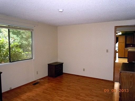 Spacious Home in Quiet Park like SettingBeautifully finished home with laminate flooring through most of the home. Close to shopping, Groceries, I-5, Golf Course, Restaurants, Winery. In Ferndale, Blaine and Custer School Districts. Bright, open living and Dining area with great propane fireplace. Extremely functional Kitchen with plenty of storage. Kitchen open into bonus room with slider to deck. Fresh Paint inside and out. Utility room with large capacity washer & dryer. Home on acreage with 2 vehicle carport and additional storage shed. (Out building pictured usable by tenants.) On Well and Septic; tenants responsible for all other utilities and yard maintenance. Electric forced air furnace. Sorry, no students and no smoking