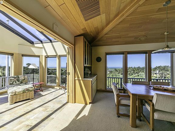 Surround yourself with quality in this exceptional custom built home in the gated community of Surf Pines. Enjoy panoramic 180' Pacific Ocean views! Living room with lots of windows and fireplace. Family room with wall of windows and fireplace, family room with woodstove, sunroom, private hot tub, large deck, shop, 1.31 acres. Adjacent lot for sale also.