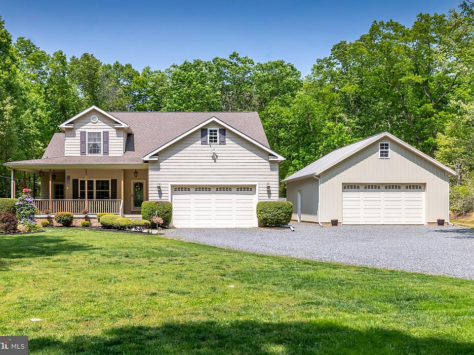 Have you been looking for your dream home and just couldn’t find the right one? Well here it is!!! This Custom Built 3 Bed, 2.5 Bath home, with a 2 Car attached garage, basement AND POLE BARN, on a secluded lot, is ready for it’s new owners! You will be impressed the second you drive down the wooded, winding, stone driveway, which is over 590 feet long and opens up to the cleared part of the lot, where the home was specifically placed to ensure privacy with a serene setting of the natural grounds! The home is centered in the middle of the 2.9 acre manicured lot and surrounded by woods, nature and backs up to over 300 acres of green acres which will never be built on! Privacy for life is what we call it! Now check out the home itself that has gorgeous Cedar Impression Vinyl Siding and a Massive Front Porch which wraps around to a separate entrance to the kitchen and offers traditional lighting and the best views and sounds nature has to offer! Enter through the charming Front Door and you will be greeted by the vaulted ceilings with a beautiful chandelier and views into the large Great room with recessed lighting and stylish ceiling fan! The kitchen, with dining area, and 180 degree views of the breathtaking grounds, is located right off the Great Room and offers porcelain tile floors, backsplash and countertops, as well as stainless steel appliances, a double oven and separate entrance to the front porch! There is large pantry and the cabinets are Handmade Custom Hickory Cabinets with Mahogony pull out easy access drawers too! You can entertain in this home and the kitchen is plenty big to handle all those family get-to-gethers! There is also a den located at the front of the home that could be used as an office or sperate living room, with awesome views of the front yard too! The Primary Bedroom is located on the main level and has a walk in closet with a custom passthrough directly to the laundry room (also located on the main level) for all those easy access laundry desires! Check out the Primary bathroom and all the custom accents including a large WALK-IN Tile Shower, Soaking tub, Water closet with toilet AND a urinal too! Upstairs offers two more oversized bedrooms with TWO separate walk in storage rooms/attics, plenty of additional closet space (walk in closets in both bedrooms) and another full bath with tub! Don’t forget the basement has 9 Feet Ceilings, just waiting to be finished, along with the attached 2 car garage with shelving AND the Detached 24X32 Pole barn, big enough to hold TWO John Deer Tractors, or 4-6 cars, whatever your hobby desires! Now for the best part….THE BACK PORCH! You thought you saw the best porch on the front, well depends on your mood that day because the back porch is ready for entertaining! The covered porch has a ceiling fan, three separate entertaining areas, railings and access to the fully fenced in yard which is beautifully landscaped! But wait…There’s more! This original owner went above and beyond when they built this home and installed 2X6 Framing with R-19 Insulation along with R-30 insulation in the attic, which makes for extremely LOW utility bills!! Nothing to worry about with this house, except what to drink while you relax on the front porch! Call today for your appointment!