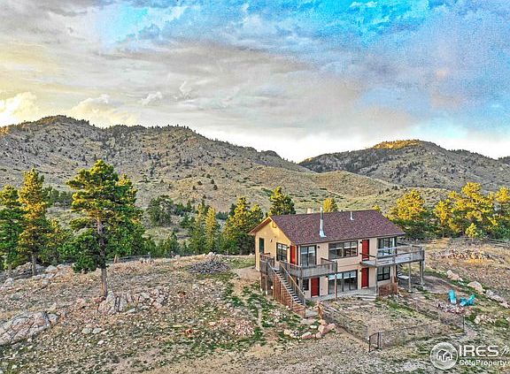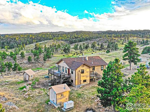 360 Degree Mountain Views! This newly painted home sits on 39 acres backing to Roosevelt National Forest in coveted Cherokee Meadows. Year round creek trickles through property. Property has a full buck rail fence on perimeter. Perfect for horses and other animals. Home has a Generac backup generator for power. Hot water heat with separate thermostat controls. This home also has a custom Russian stove for heat and cooking. MUST SEE! 2 custom kitchens and a whole lot more!