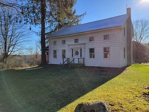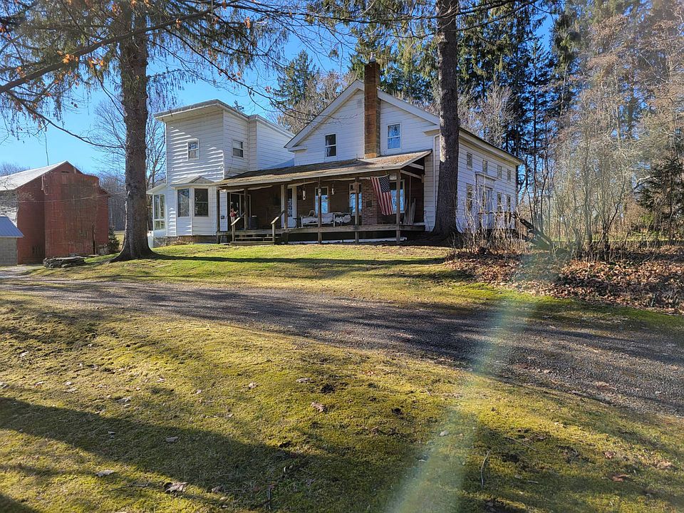 Live the dream in this charming Greek Revival Farmhouse located in the legendary Leatherstocking area near Cooperstown NY. The farmhouse was originally built in 1840 but has been lovingly cared for and updated through the years, while retaining many original features as well. The house is 2627 square feet with 4 bedrooms and 2 full bathrooms, one of which is on the first floor and conveniently includes the laundry room. Beautiful wide plank floors set off the warm and inviting main floor, with separate living, study and dining areas. In the kitchen there is both an old-fashioned cast iron, wood burning cook stove as well as a modern stainless steel gas range with oven. Upstairs features four nice sized bedrooms and shared full bathroom with a claw foot tub. The attic has been insulated with contemporary spray foam insulation. While the house is heated with an oil furnace, the living room also has a very appealing wood stove for extra coziness in the cold weather. The house has a newer steel roof and low maintenance aluminum siding as well as 2 septics and a newer well pump. There are multiple barns on the property, some historical, others more recently built, which can be used for livestock, storage, workshops or any number of other possibilities. The property has been actively used for farming with the 44+/- acres of tillable fields combined with fenced pasture, most recently used for beef cattle. This property offers excellent deer and turkey habitat, which transitions from mature hardwood stands to open areas as well as dense cover. The back section of the property is ideal for food plots. The woodlot is a mix of pine and hardwoods, with mainly oak and maple. There is a small pond on the property as well. On the back side of the property, it borders Gilbert Lake State Park providing an additional 1584 acres for additional hunting, as well as 12+ miles of trails for hiking, skiing, snowmobiling, in addition to swimming, boating and fishing on the lake. Nearby Texas Schoolhouse State Forest with 1245 acres is only 2 miles down the road and offers additional outdoor recreation with hunting, hiking, as well as multiple fishing opportunities for wild and stock trout, including Butternut Creek. Amenities are available in nearby Mount Vision 5 miles away and Hartwick 6 miles. The property is close to area colleges, Hartwick College and SUNY Oneonta. In addition, this country location is only minutes away from so many outstanding amenities in the Cooperstown and surrounding areas, including the National Baseball Hall of Fame, Fenimore Art Museum, NYS Historical Society, Farmers Museum, Brewery Ommegang, Glimmerglass Opera, Cooperstown Dreams Park, as well as shopping, several area golf courses, and many choices of outstanding restaurants. Amazing fishing and watersports are available on the pristine Otsego Lake, a 4046 acre lake, renown for lake trout, walleye, perch and the Glimmerglass State Park with a public beach with picnic areas and 593 acres for hiking, camping, and in the winter ice skating and cross country skiing on its many trails. This is a very special property and offers the new owner so many choices: a large family private home, small farm or vacation get-away, solid income potential as a rental so close to Cooperstown and baseball venues, a hunting camp that can accommodate a large party with additional 1584 acres in the adjoining Gilbert Lake State Park, all this located within the legendary and historical Leatherstocking area of Central New York State.