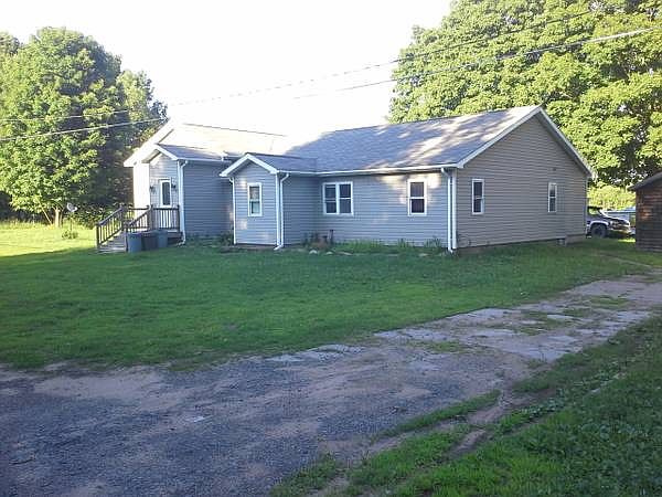 4 bedroom 1 bath on 105 acres. 12 x 12 kitchen with a "L" shape bar. Kitchen is open to the living room and dining room. Detattched garage, barn, 2 other garage and 1 pole barn.