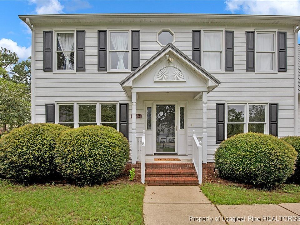 This stunning two-story home in Hunters Ridge boasts spacious rooms and a beautifully maintained corner lot. The traditional layout includes a formal dining room, a formal living room/sitting area, and a family room featuring a fireplace. The updated kitchen is a highlight, with white cabinets, granite countertops, a large pantry, and a peninsula with additional seating. A generously sized laundry room with a utility sink is conveniently located off the garage, adjacent to the kitchen. All bedrooms are located upstairs, including a magnificent owner's suite with impressive dimensions. The owner's bedroom features two closets, and the ensuite bathroom features two closets, dual vanities and a combo shower. Additionally, a large bonus room serves as the fourth bedroom and includes a closet. The backyard offers an ideal retreat, featuring black aluminum fence, a back deck extending from the screened porch, and a handy storage shed.