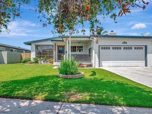 The one story property you've been waiting for is here! This fully upgraded 3 bedroom 2 bath home has all the bells and whistles including paid off solar! This property boasts curb appeal with a beautifully manicured lawn, gorgeous flowers, and a cozy outdoor front patio. The interior of the home is 1600 square feet of modern upgrades mixed in with pristine original hard wood floors. Family room, kitchen and laundry room were remodeled within the last 5 years and show nothing less than pride of ownership. Kitchen comes equipped with stainless steel appliances, wood-like tiled floors, quartz countertops, and an elegantly tiled backsplash. The family room is an entertainers dream with surround sound, a stunning stone fireplace, and large windows providing lots of natural light and a nice view of the picturesque butterfly garden. Primary bedroom comes with a large walk in closet and a gorgeously tiled shower. As if that wasn't t enough the backyard has a built in grilling area, a custom wood burning fireplace, and tons of storage space! This property will not last, come make this enchanting home yours!