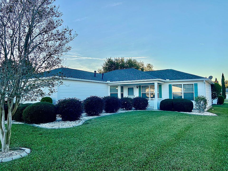Inside, enjoy a large master with an extra large walk-in closet, linen closet, and split bathroom with walk-in shower. The kitchen offers a gas stove, microwave, dishwasher, side-by-side refrigerator and a skylight that floods the space with natural light. The dining area features a spacious window with a view facing the street. Relax year-round in the enclosed lanai. The guest room boasts a walk-in closet and nearby full bath with tub. This home is conveniently located just minutes from the Glenview Country Club, Saddlebrook Recreation Complex, and all of The Villages’ world-class amenities including championship and executive golf courses, pickleball and tennis courts, recreation centers, fitness facilities, and countless clubs for every interest. The seller can accommodate a quick close and you can enjoy The Villages for the rest of the winter!