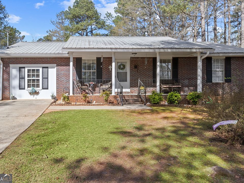 IMMACULATE 4-SIDED BRICK HOME ON ALMOST AN ACRE! Family Room with laminate hardwood flooring & a ceiling fan. Spacious Kitchen with all appliances remaining, laminate hardwood flooring & breakfast area. Den with carpet & Laundry Room off Den. Master on Main w/ceiling fan, laminate hardwood flooring and walk-in closet. Master Bath w/vanity & shower w/glass frame. 2 Additional guest bedrooms on main - both have closets. Guest bathroom in hallway w/vanity & shower w/sliding glass door. (Both bathrooms were renovated in 2023). Covered rocking chair front porch & rocking chair rear covered porch. Hot tub is 2+/- years old, 18x12 outbuilding w/electricity. Metal roof & more!