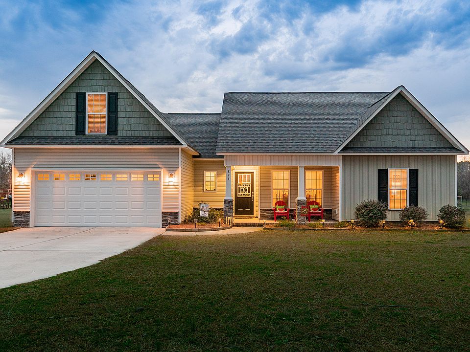 Located just 3 minutes from the new Ayden bypass and eligible for USDA Financing! This beautiful home is situated on almost half an acre with a 2 car garage, and huge bonus room. This split floor plan 3 Bedroom, 2 Bath home has an open concept kitchen/living area with many custom upgrades. The home features a large kitchen with stainless appliances and dining area that overlook the great room. Down the hall from the great room are two bedrooms and a full bathroom. On the other side of the house is the large master bedroom and stairs to the large bonus room. The upstairs bonus room is perfect for use as a bedroom, office, or home theater. The spacious master bedroom overlooks the backyard and has an en suite with double vanity, tub, and separate shower as well as two walk in closets.