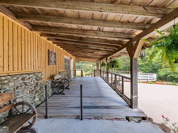 Serene retreat with a warm inviting atmosphere! Mini Farm on 8 Acres. This beautiful, completely remodeled rustic farmhouse features an oversized living/family room with a stunning stone fireplace. It offers a spacious kitchen, a large pantry, and a separate dining room with access to a private porch. The master bedroom is conveniently located on the main floor and has doors leading to a lovely wrap-around porch. There is also a bonus room on the main that can be used for office, playroom, or additional bedroom. Upstairs are 2 bonus rooms that seller used as bedrooms. There is also a full bath upstairs. Additional highlights include a 3-bay barn with two rooms, a half bath, a bar area, and an upstairs loft. This space could easily be converted into an apartment or additional living quarters. There is also a large pavilion that has been used for weddings, parties, and family gatherings. This gorgeous rolling pastureland is complemented by a year-round stream for your animals. The above-ground pool features a large wrap-around deck. There is also a 50 Amp Electrical outlet for a camper. Roof 2 years old! This home is truly a little piece of paradise! Don't let this opportunity slip away! 1 Year Home Warrnty Included