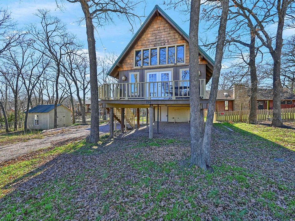 Impeccably maintained A-Frame home on Lake Texoma, perfect for serene retreat or lucrative vacation rental. Proximity to the shoreline and convenient access to boat launch and Megastar Casino. Recent upgrades boast new plumbing, electrical, and exterior stairs, all with a fresh coat of paint. The expansive lot offers ample parking and a storage shed for tools & crafts. Safeguard your vehicles and watercraft in the 2-car carport. Sold fully furnished, including 2 futons, this property is a rare find that demands attention. With its meticulous upkeep, this property is a serious contender in the market. Schedule a viewing today before this exceptional opportunity with a lake view slips away.