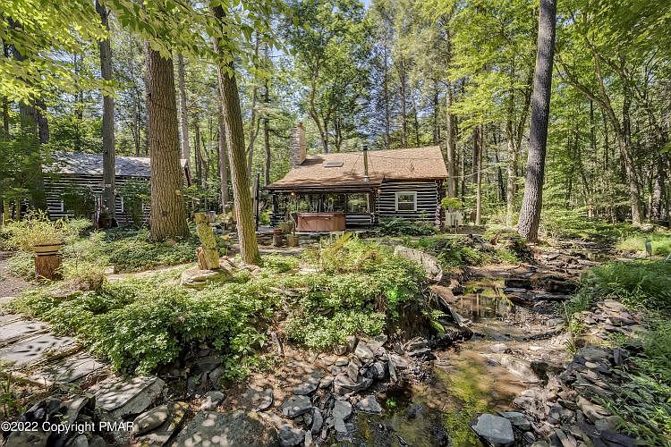OFFER ACCEPTED. OPEN HOUSE CANCELLED. PENDING RECEIPT OF EMD TO CHANGE STATUS. Check out this rare find! 1939 log cabin, authentic as authentic could be! With the Marshalls creek twisting and turning along side the front of the home into the back. Seating arranged throughout the backyard to peacefully absorb the soft flow of the water! Hot tub rested right in the center of it all for complete relaxation! Not to mention the fire pit area for the evening setting. Screened porch in front; surrounded by woods provides great finished outdoor space to further absorb the fresh outdoors. This home offers a detached garaged and covered storage for wood to use in the wood burning stove.