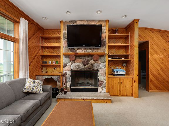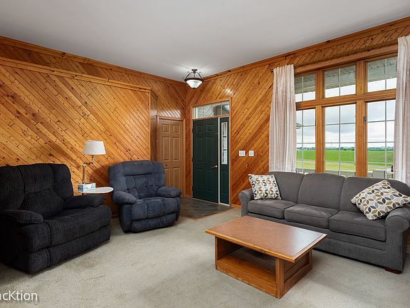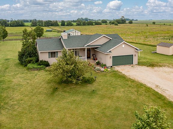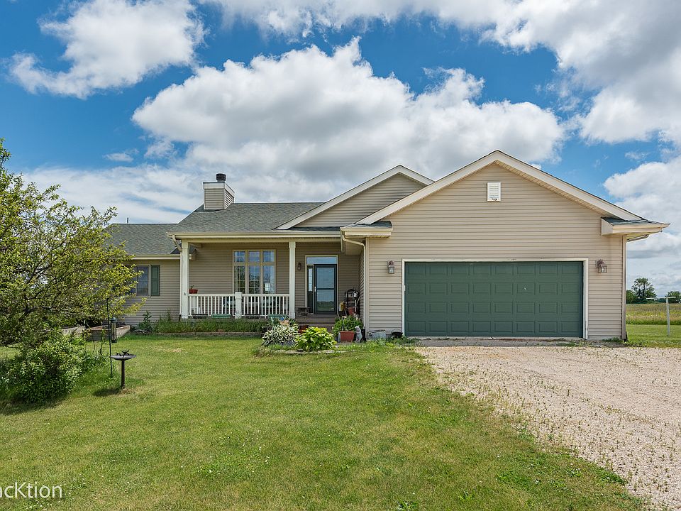 This beautiful ranch home, complete with an inviting front porch, is a perfect horse property. Situated on over 5.3 acres zoned for agriculture, it allows for horses and small livestock with fenced pastures. The property includes a 24'x36' horse barn with 2 stalls, an 18'x36' run-in shed with an 18'x18' stall, and hay storage for 150 bales on a raised floor. A 350' deep well near the barn and pasture provides a hydrant for easy access to horse facilities. The home, built in 2002, features 4-5 bedrooms and 3 full baths. The open floor plan encompasses the kitchen, dining, and living areas, highlighted by a wood-burning fireplace with a gas ignitor. The partially finished lower level offers a 25'x29' unfinished area for a family rec room, 2 bedrooms with a new full bath, and a workshop. The first-floor primary suite boasts a spacious 18'x16' bedroom, a 10'x6' walk-in closet, and a full bath with a Jacuzzi tub, a new fully tiled walk-in shower with body sprays, and a double sink area. The country kitchen includes generous counter and cabinet space, a breakfast bar, and a 14'x12' dining area with a patio door leading to a 15'x13' three-season sunroom. The sunroom features a full windowscape overlooking the country view and access to a 12'x16' deck. The oversized attached garage measures 22'x24'. Additional features include a roof replaced in 2015, a new furnace and central air conditioning (approximately two years old), a whole-house generator with surge protection (valued at approximately $9000), and a new storage shed. All your dreams will come true with this home!