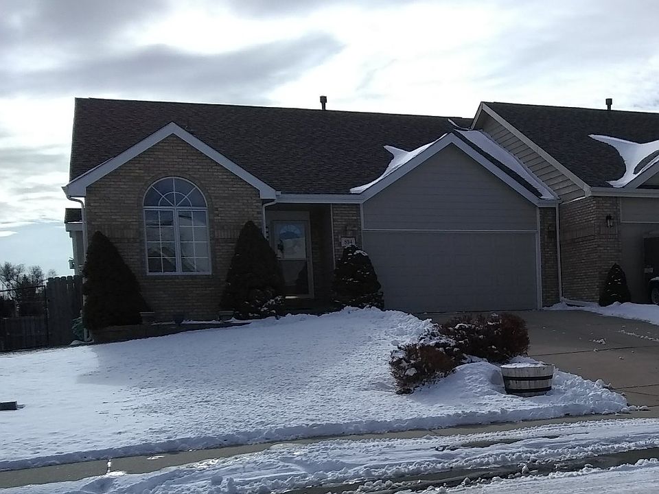 Beautiful half duplex on a corner lot! New exterior paint and a newer roof make for great curb appeal. Vaulted ceilings and wood floors welcome you inside. The spacious eat-in kitchen offers wood floors, an island and ample cabinet space. Cozy up by the gas fireplace with a brick hearth! The master suite has vaulted ceilings, a large walk-in closet and an ensuite bath with linen storage and a large shower with seating. There is also a guest suite with vaulted ceilings and a walk-in closet and an additional suite in the finished basement, which also features a walk-in closet and a bathroom. A laundry/mud room with cabinets and a closet for storage leads out to the 2-car garage. French doors take you out to the covered deck in the fenced backyard, which also features a shed for added storage! New lighting fixtures, added storage and shelving included in the basement, and a reverse osmosis water treatment system make this home a must-see! Take a tour today!