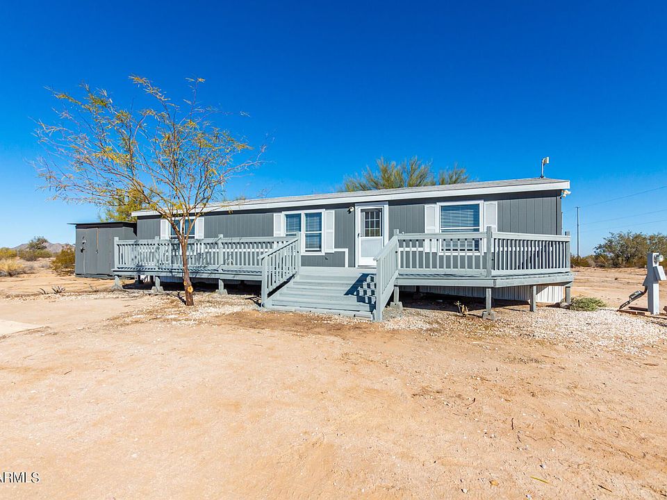 Come see this beautifully remodeled home on 1.8 acres with stunning mountain views! NEW laminate and vinyl plank flooring throughout (NO CARPET!). NEW interior paint. NEW cabinets and NEW quartz counters in the kitchen and both bathrooms. NEW stainless steel appliances with matching pulls on the cabinets. NEW faucets and toilets. The exterior has NEW vinyl skirting and NEW exterior paint. Storage shed and a fenced rear yard for your pets. You even get a NEW HVAC system, including NEW ductwork. Split floorplan with vaulted ceilings, and the primary bedroom features a private bath w/dual sinks, custom tiled shower, and walk-in closet. You are the last home on the street, so enjoy peace and quiet as you sit on your HUGE front porch and watch the sunsets. Make an appointment today!