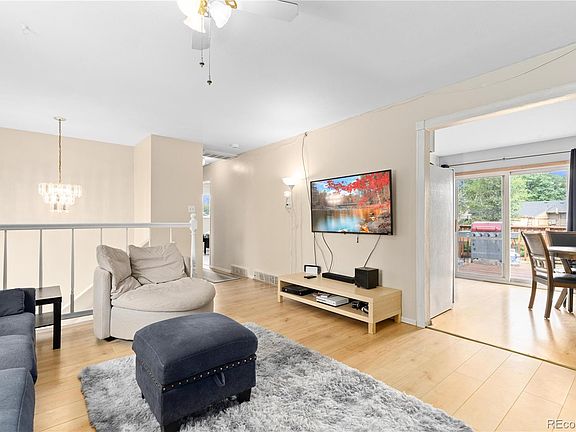 Welcome to this charming home nestled on a picturesque, tree-lined street in the wonderful Apache Mesa neighborhood of Aurora! As you approach the inviting front entrance, you have the option to step into the upper main living area or explore the lower level. The upper level features a spacious living room with large windows that flood the space with natural light, creating a warm and welcoming atmosphere. Adjacent to the living room, the kitchen offers a cozy eat-in nook, perfect for casual meals and morning coffee. Sliding glass doors lead to a sunny patio, seamlessly blending indoor and outdoor living. The main floor also boasts a comfortable primary bedroom with an en-suite bath, providing a serene retreat at the end of the day, along with an additional bedroom to suit your needs.