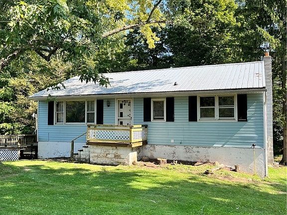 Spacious ranch on nearly 3 acres in quiet country setting. This one owner home as had many updates done and is ready for you to put your own touch on. Newer metal roof, siding, furnace, hot water tank and brand new carpet all completed in the last 5 years. The large two and a half car garage has power and is ready for a work shop. This walk out full basement has the laundry and is ready to be finished with a bar at one end. There was previously a wood stove in the basement that the chimney and elevated hearth remain if new owners wished for wood that is possible. Each of the good size bedrooms have large closets. This property comes with additional parcel of 2.41 acres adjoining the east side of the land the house sits on. So many possibility for this home!!