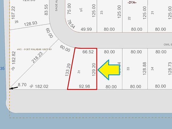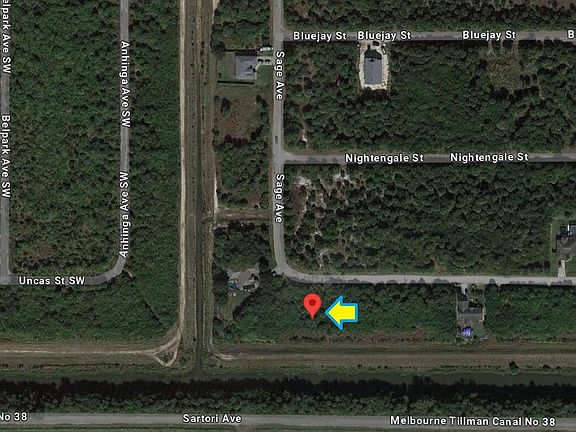 0.24 acre buildable single family residential lot [Rs2 Zoning] with an existing home 60 feet away and powerlines at the street and with a drainage right-of-way easement canal in the back for more privacy available in Port Malabar Unit #49 of Palm Bay. Located in the rural southwest section near the famous Compound Area, is just 3.4 miles - 7 minutes to Westside Elementary School, 5.4 miles - 10 minutes to the Publix Supermarket, 16.6 miles - 33 minutes to Melbourne Airport, and 21.2 miles - 36 minutes to the beaches of Indialantic. From exit #176 of I-95 go west on Palm Bay Road NE for .7 miles, left on Minton Road for 3.3 miles, right on Jupiter Boulevard for .1 mile, left on DeGroodt Road SW for 4.6 miles, right on St. Andre Boulevard for 1.2 miles, and left on Madden Avenue for .5 miles. Turn right on Owl Street and the lot will be on the left side of the road.
