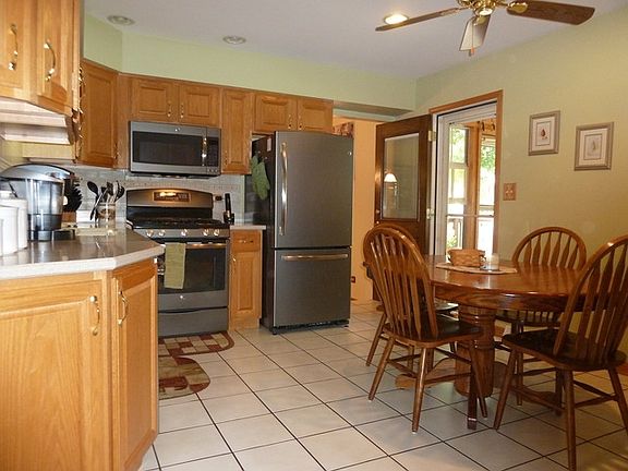 Beautiful, well maintained split-level with a cul-de-sac location and private back yard! Three separate areas for living and entertaining: Spacious formal living room opens to formal dining room, lower level family room with wood burning fireplace, and a three season room with windows on three sides overlooks the professionally landscaped backyard with privacy fence, brick paver patio and storage shed. Enjoy your breakfast and informal meals in the separate eating area in the remodeled kitchen with newer stainless steel appliances. Master bedroom has private entrance to the shared bathroom. Huge laundry room with newer front loading washer and dryer and room for an office work area. Neutral decor, move-in ready!