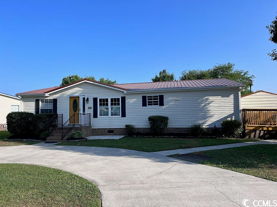 Bright and sunny 3 bedroom 2 bathroom manufactured home with deck less than 5 miles to the ocean in Myrtle Beach. You own the land in the established and popular community of Weslin Creek located near Surfside Beach and Murrells Inlet. Features include a 12 x 24 workshop-shed with ramp and electric, newer metal roof, HVAC, water heater and includes all appliances plus washer and dryer. This split bedroom home with an open plan has plenty of kitchen cabinets, breakfast bar, walk-in closets, soaking tub with separate shower in main bath, laundry room and a half-circle driveway on a corner lot for plenty of parking. Don't miss the opportunity for easy living so close to the beach!